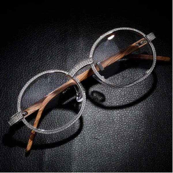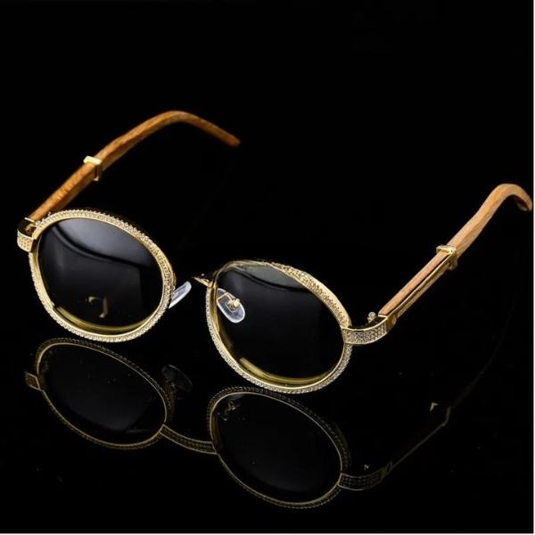 Vintage Round Moissanite Sunglasses Luxury Men Women Oval Crystal Wood Glasses Fashion Eyewear Hip Hop Jewelry