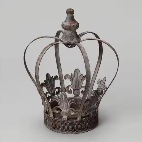 Vintage Royal Crown Sculpture In Rustic Metal Finished For Elegant Table Decor And Stylish Home Accent Display