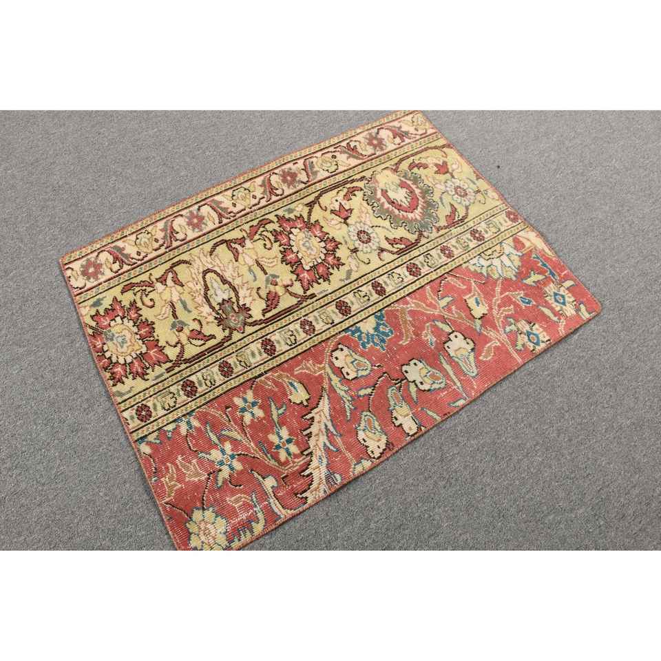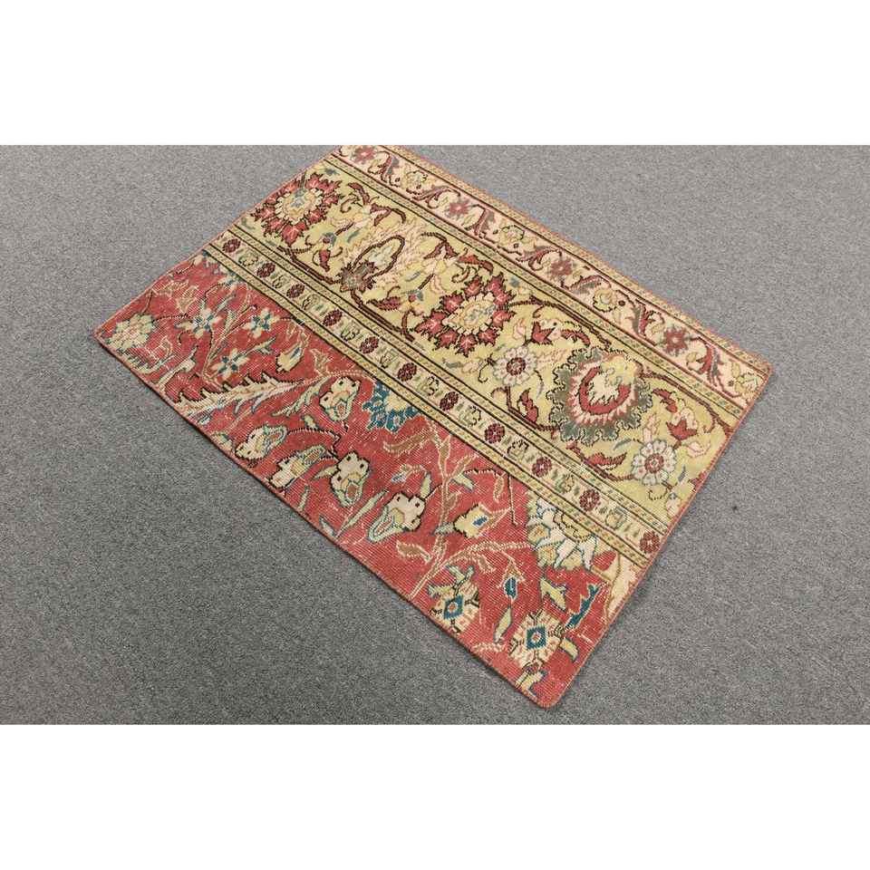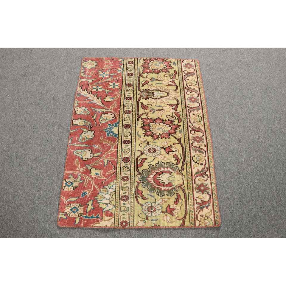 Vintage Rug, 2.2x3 ft Small Rug, Red Animal Print Wool Turkish Rug
