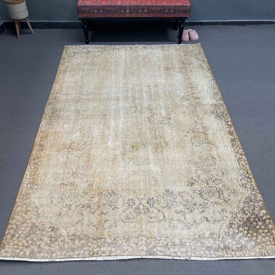 Vintage Rug, 5.2x8 ft Large Rug, Brown Southwestern Wool Turkish Rug