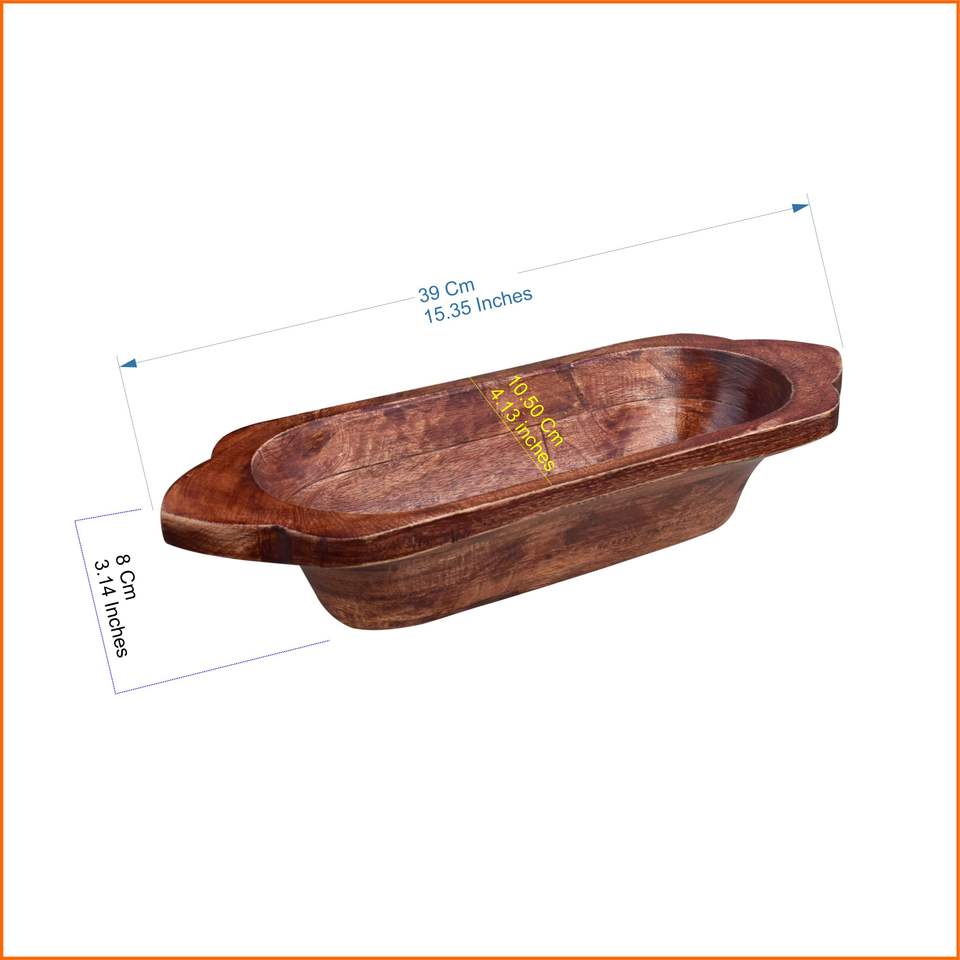 Vintage Rustic Acacia Wood Dough Bowl Natural Finish Long Bread Bowls for Kitchen Tabletop Mango Wood Dinnerware for Presents
