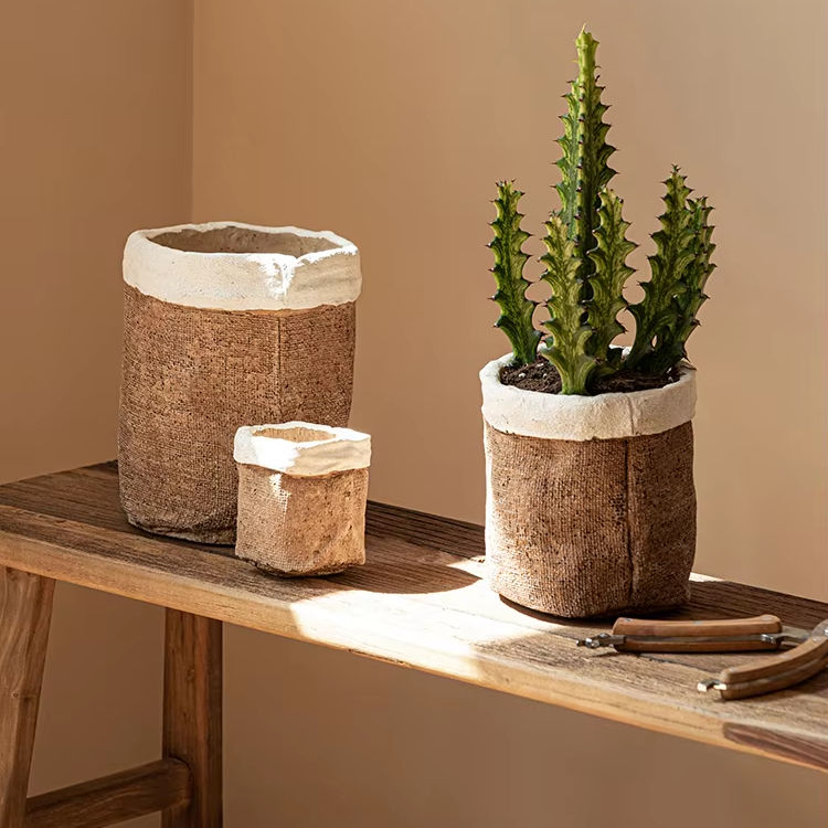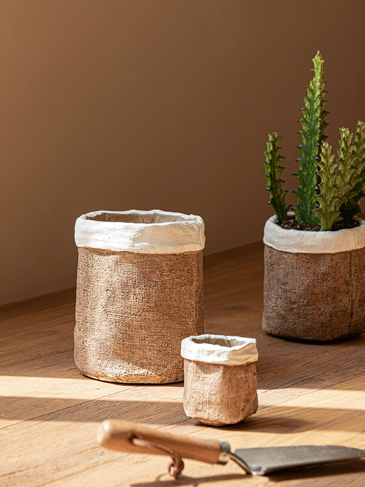 Vintage Rustic Ceramic & Clay Pot Home Decor Cement Sack Planter for Succulents