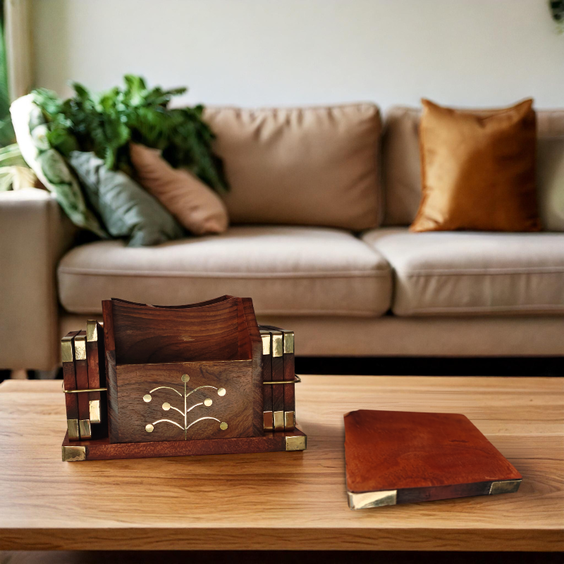 Vintage Rustic Indian Handicraft Handmade Solid Wood Pan Stand Traditional Decorative Living Room Organizer for Hand Tools
