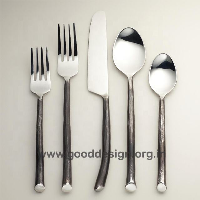 Vintage Rustic Look Stainless Steel Twisted Leaf End Handle Cutlery Set and Flatware