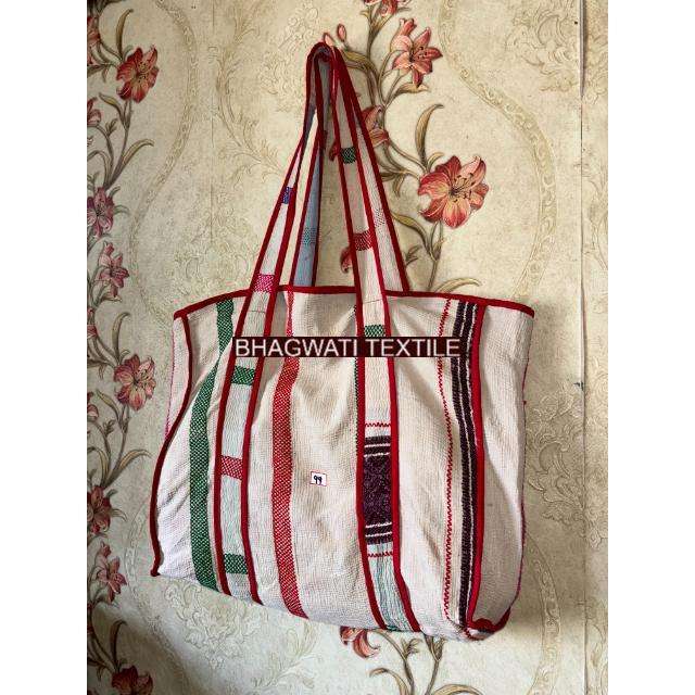 Vintage Sari Kantha Market Tote Bag Custom Pattern Reversible and Fashionable Cotton Handle Recycled Gift for Her
