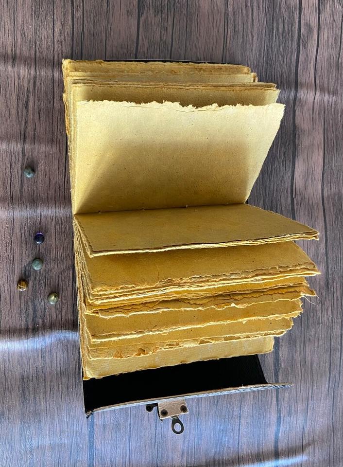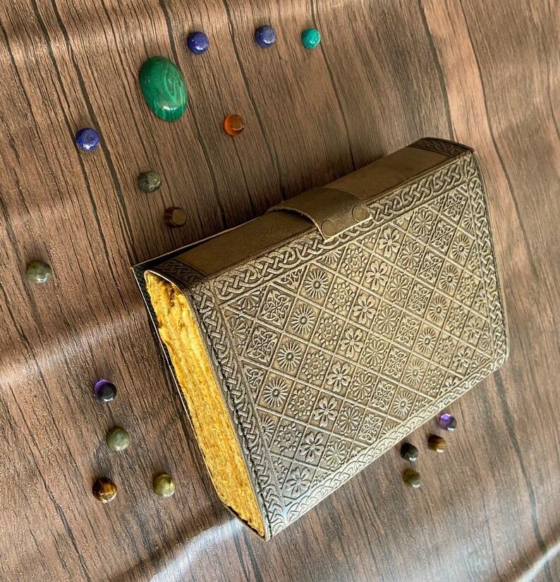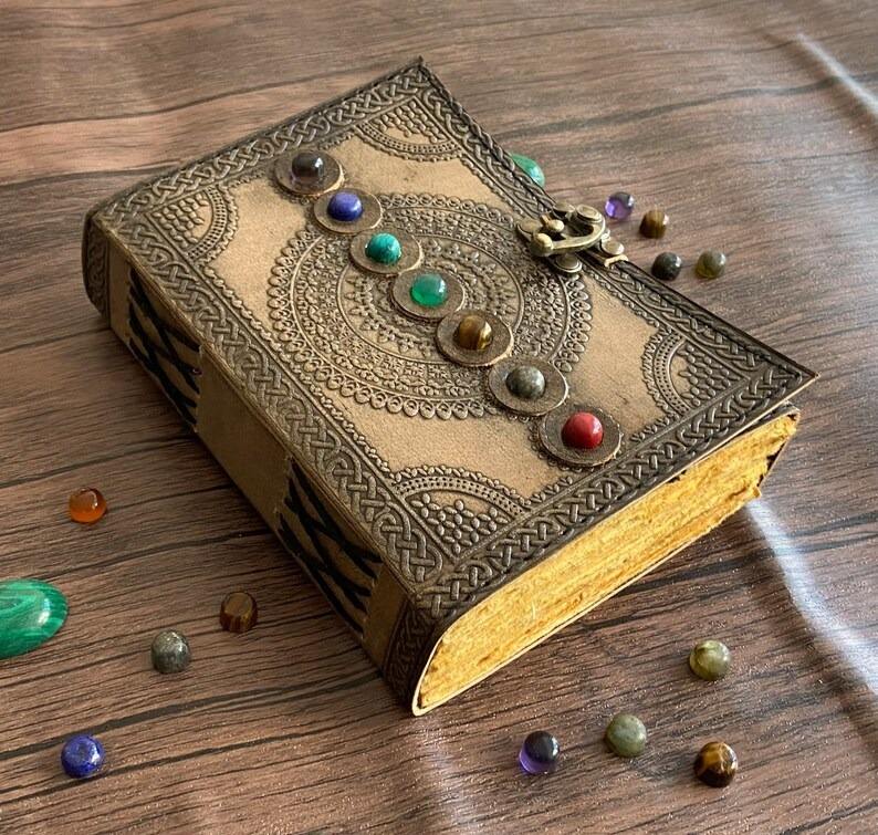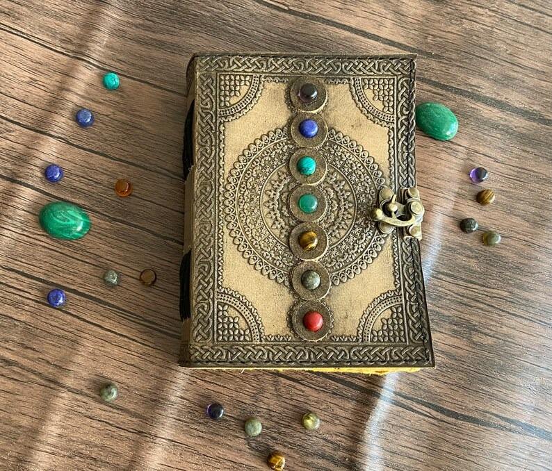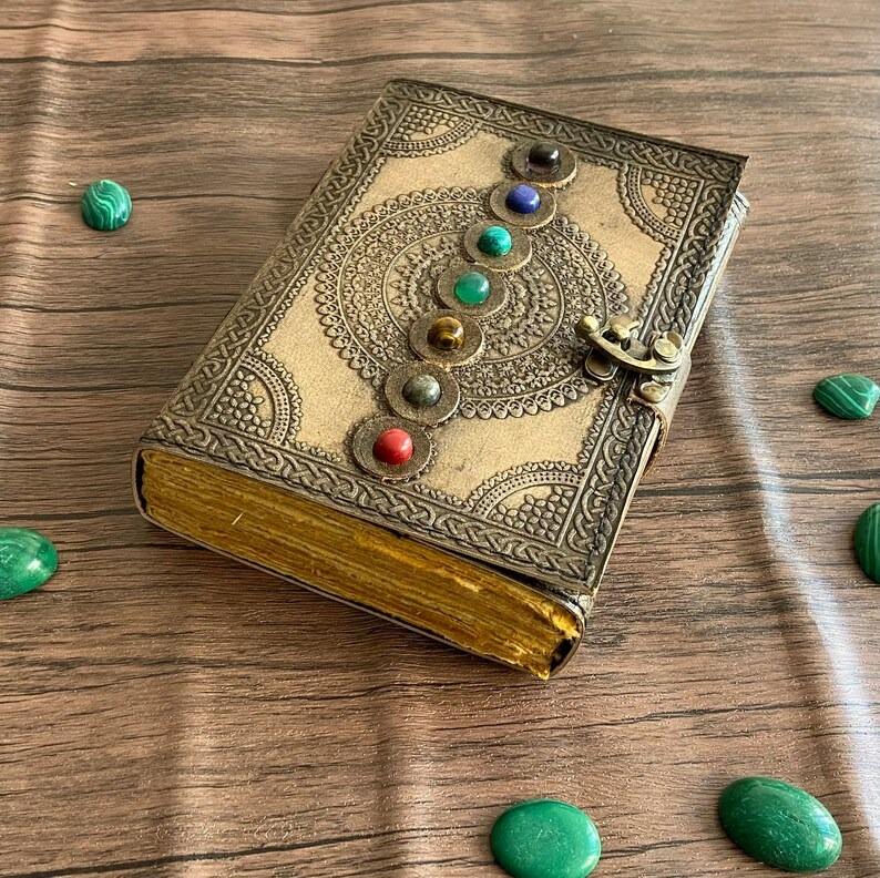 Vintage Seven Stone Organizer Spiral Journal Leather Spell Book with Deckle Edge for Notes and Diary Use