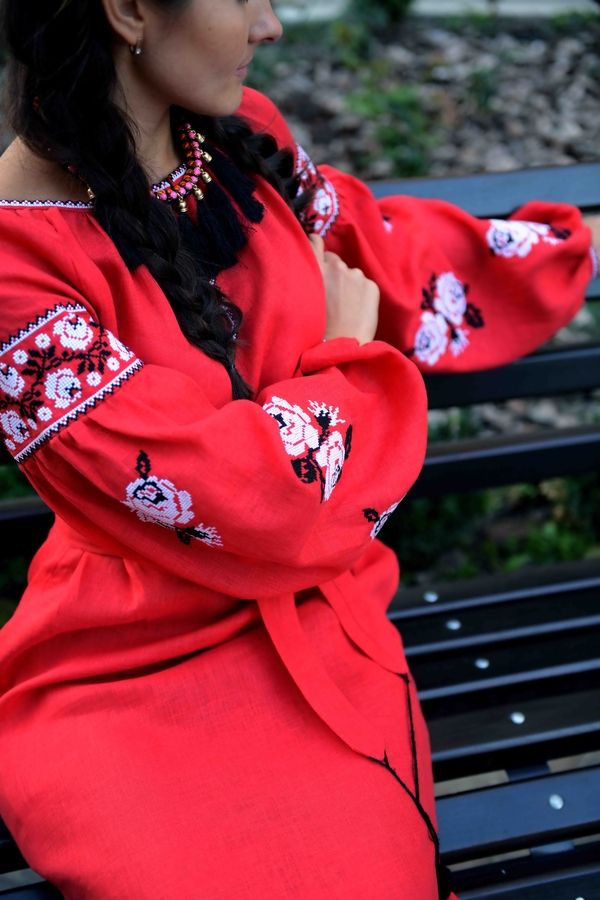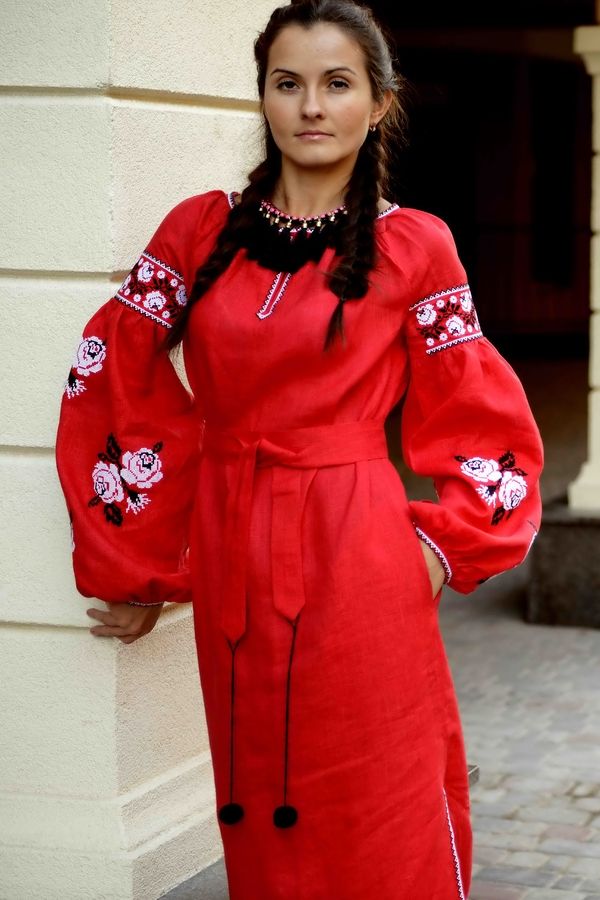 Vintage Sexy Long Sleeves Floral red Mexican Embroidered Long Dress Women's Clothing 2025 new eco-friendly natural best clothing