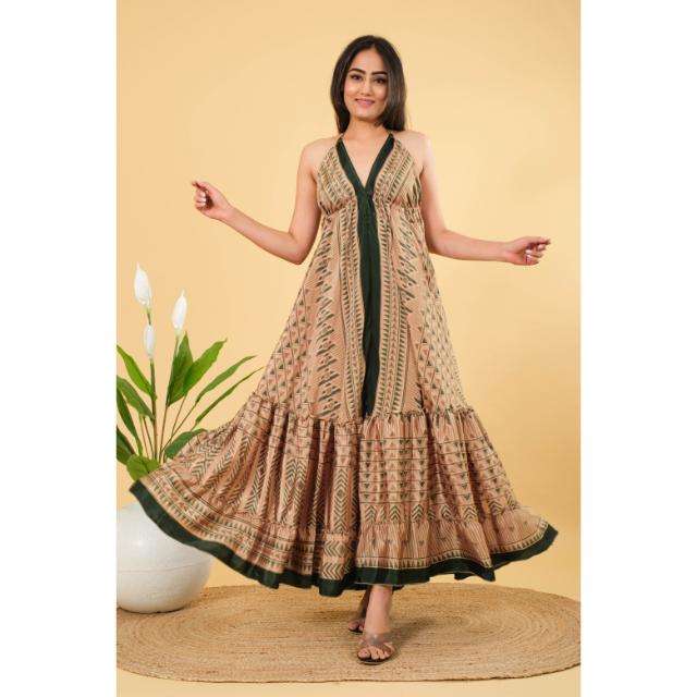 Vintage Silk Dress Women Clothing Summer Wear Smocking Dress Backless Dress