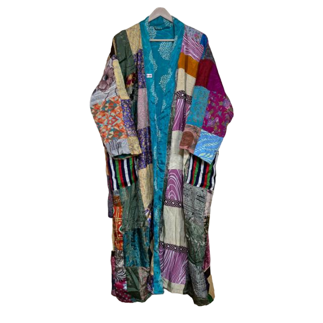 Vintage Silk Kimono Japanese Swim Wear Women Sleepwear Patchwork and Floral Printed Silk Sexy Kimono Long Night Gown Maxi