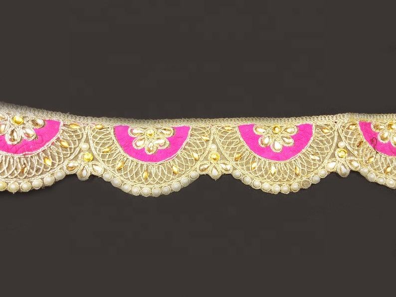 Vintage Silk Sari Trim Pink With Gold Embroidery Indian Lace Border Wholesale Laces Fabrics for Women