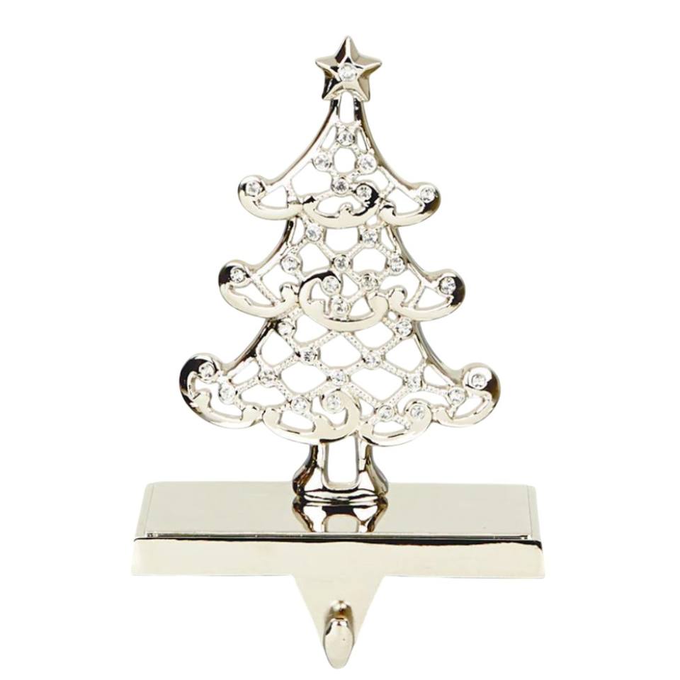 Vintage Silver Crystal Christmas Tree Stocking Holder For Mantel Decoration Festive Metal Stocking Hanger Hook For Home Decor