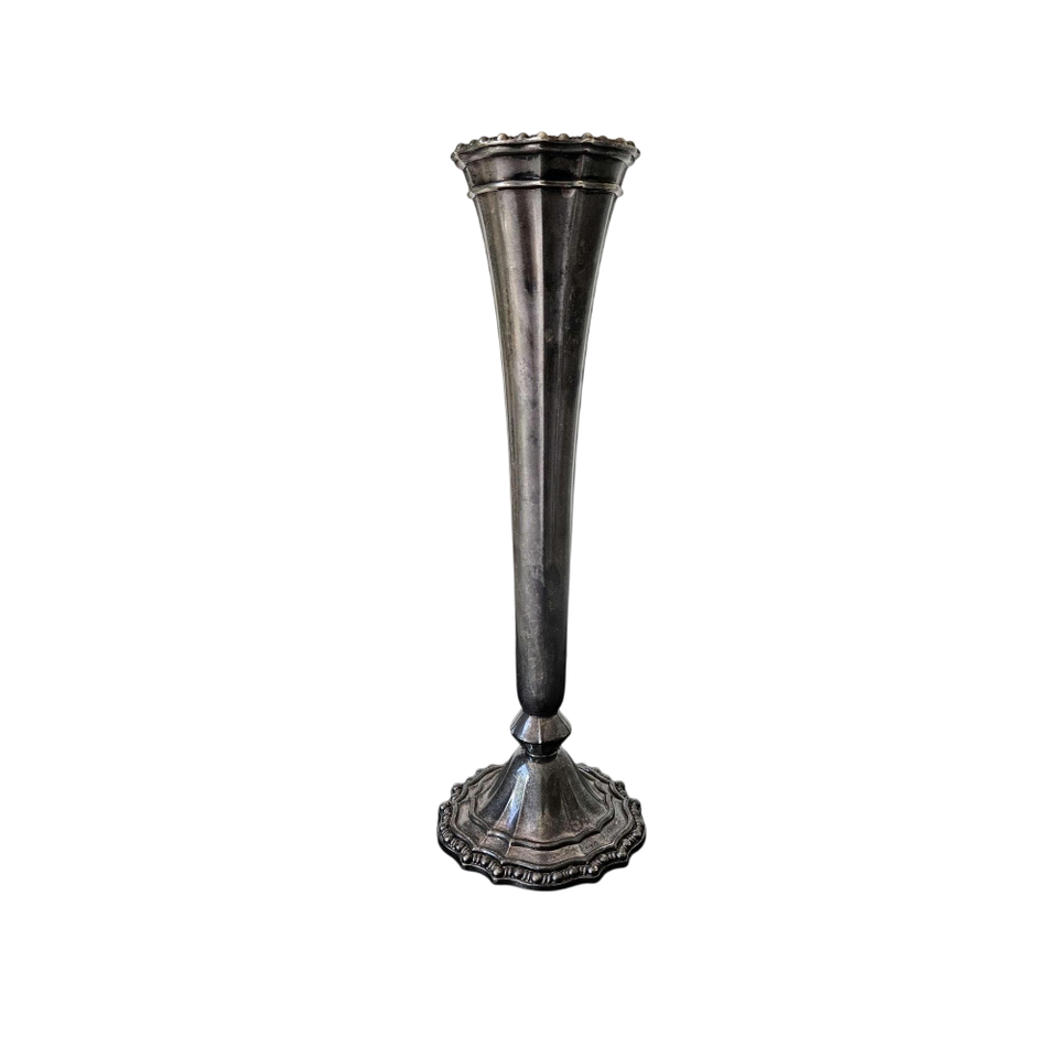Vintage Silver Plated Trumpet Vase Elegant Fluted Design Scalloped Rim Tall Metal Bud Flower Vase For Wedding & Home Decor