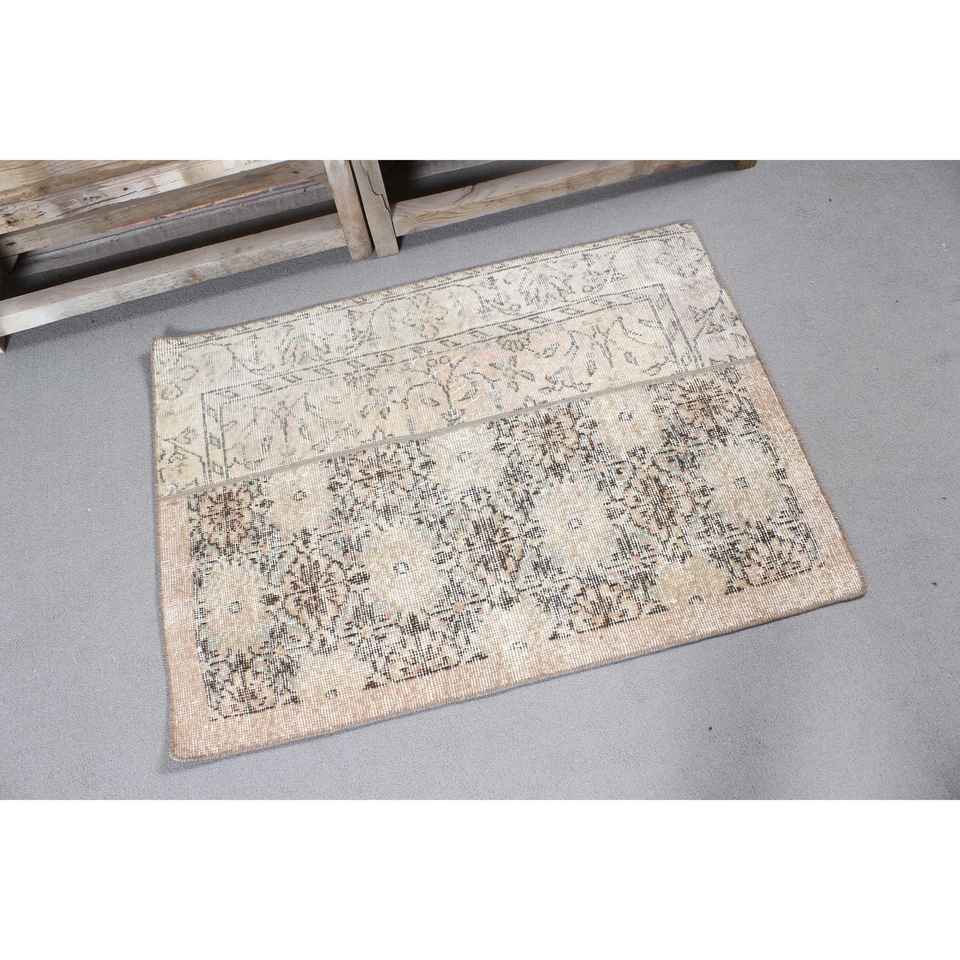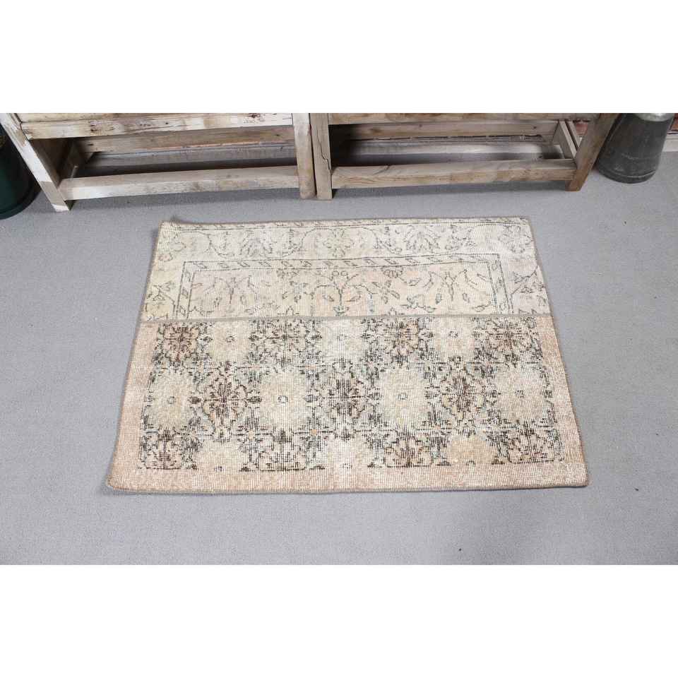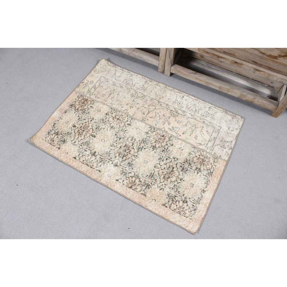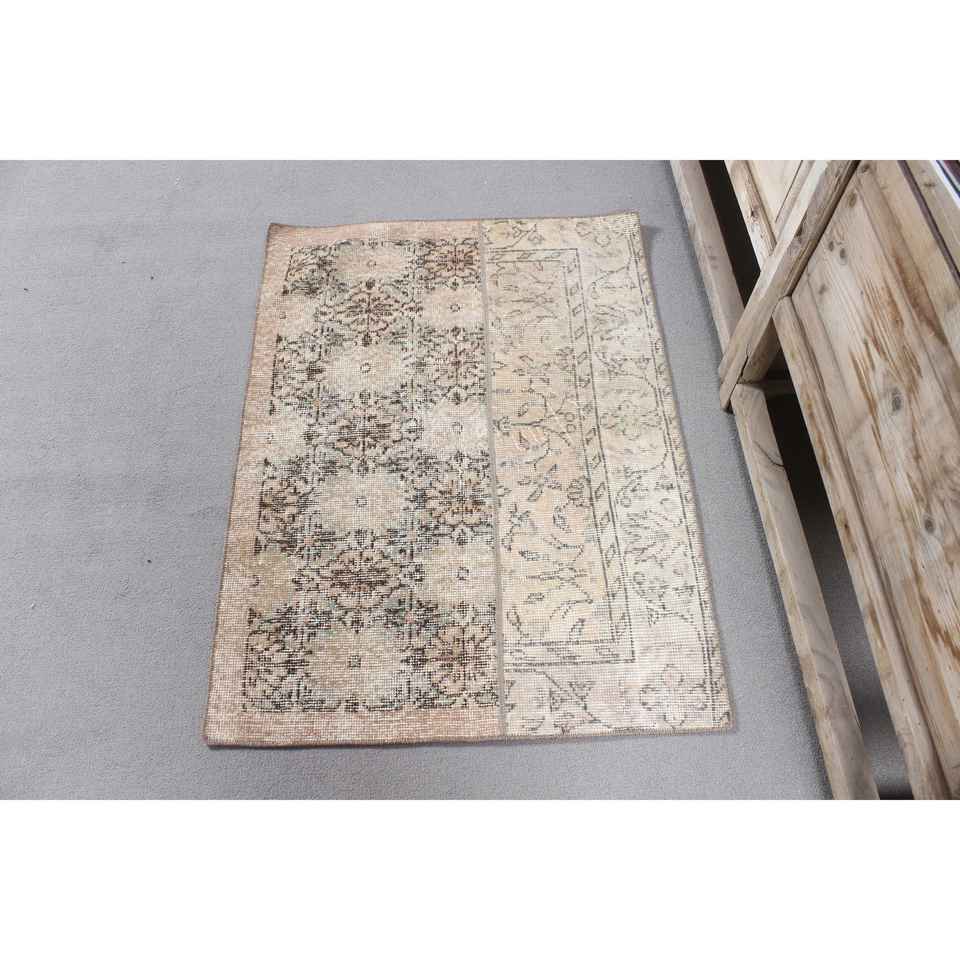 Vintage Small Eco-Friendly Patchwork Rug 2.5x3.4 ft Brown Gray Wool with Latex Backing
