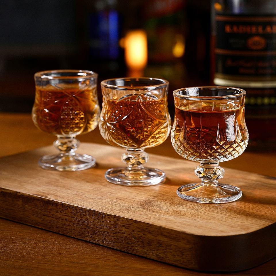 Vintage Snifters Mini 50ml Whiskey Tasting Glasses Embossed Shot Glass Cup With Stem