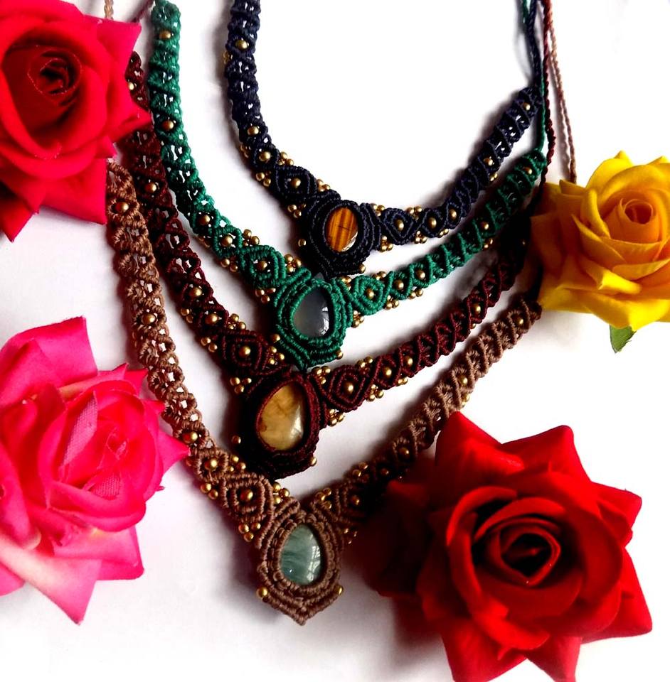 Product Name:Rose Quartz Heart Multi-Color Cord Macrame Necklace