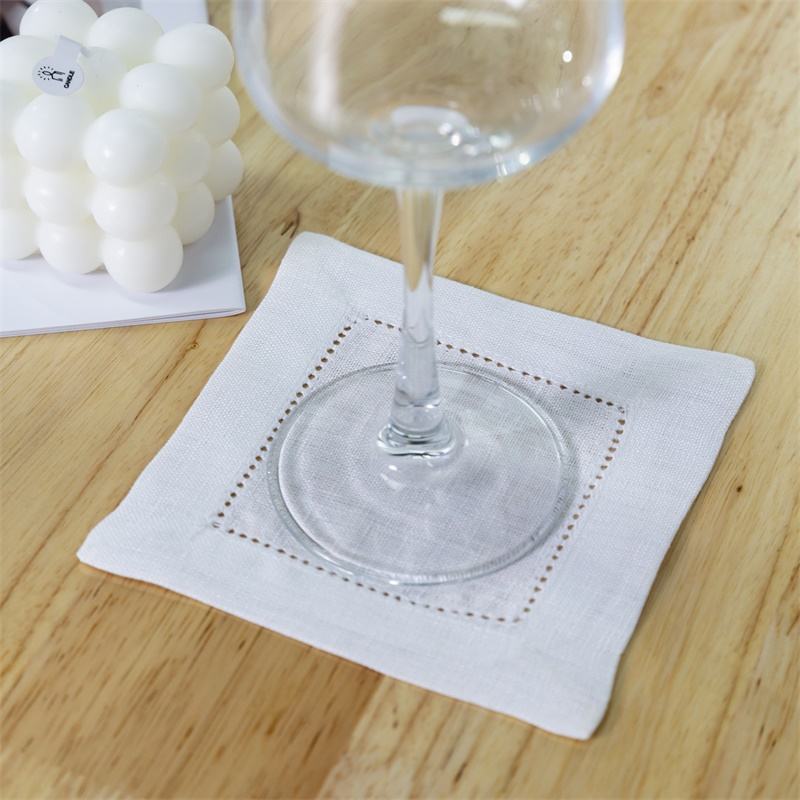 Cotton linen hemstitch cocktail coaster napkin