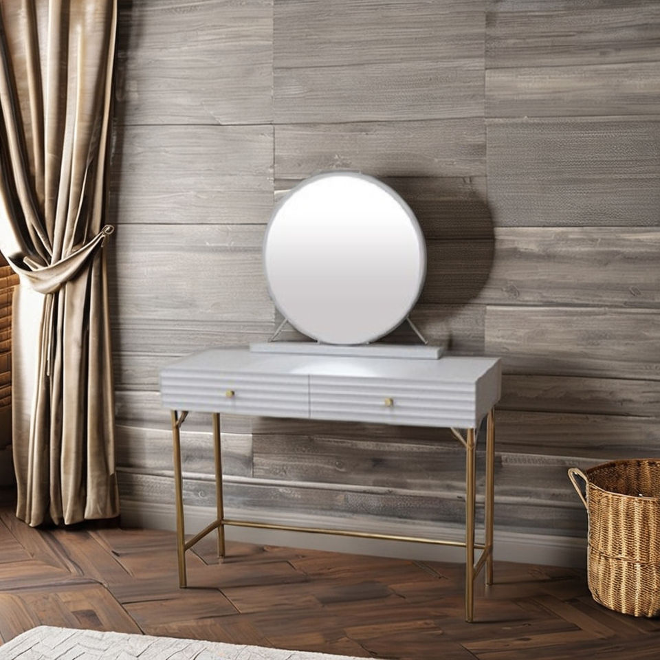 Vintage Solid Mahogany Wood Dressing Table Mirror Elegant White Painted Frame with Detailed Bedroom Vanity Furniture