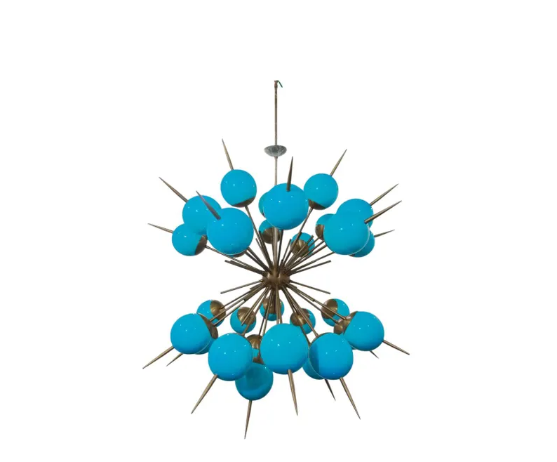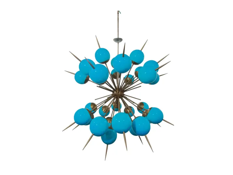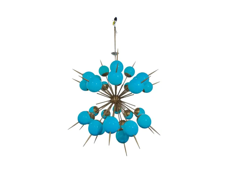 Vintage Sputnik Chandelier Pink Glass Ball & Brass Stilnovo Style Light 1950s Design Retro Home Lighting Fixture
