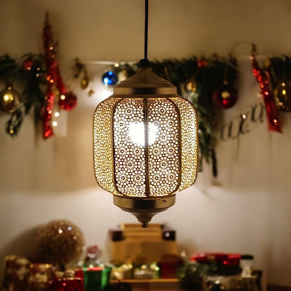 Vintage Square Moroccan Pendant Light Arabic Style Metal Hanging Ceiling Lamp for Home Festive Christmas Decorative Lantern