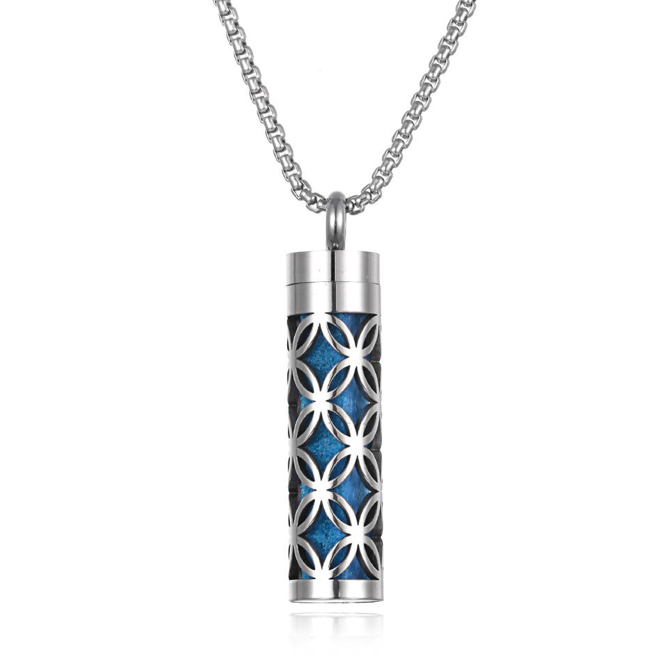 Vintage Stainless Steel Cylindrical Corrugated Pattern Essential Oil Diffuser Necklace Link Chain Perfume Aromatherapy Accessory