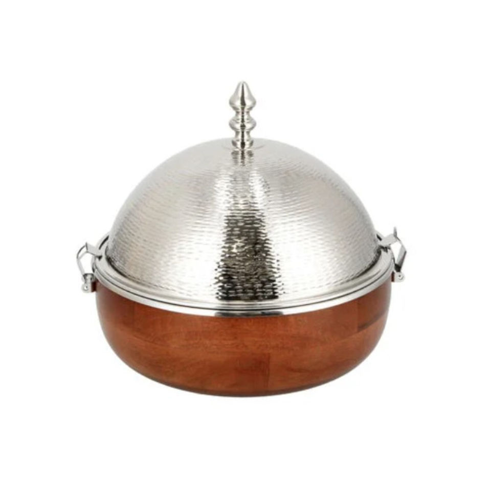 Vintage Stainless Steel Insulated Casserole Hot Pot Food Warmer Serving Dish With Wooden Finish Lid For Home Kitchen Restaurant