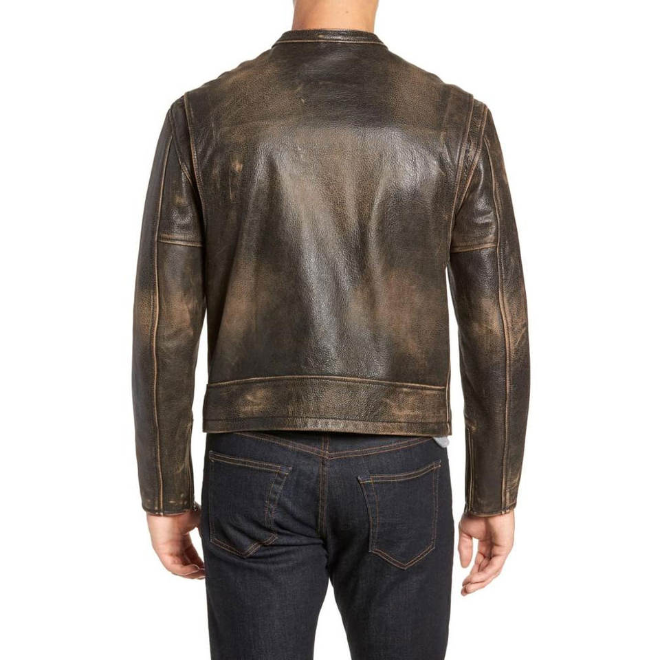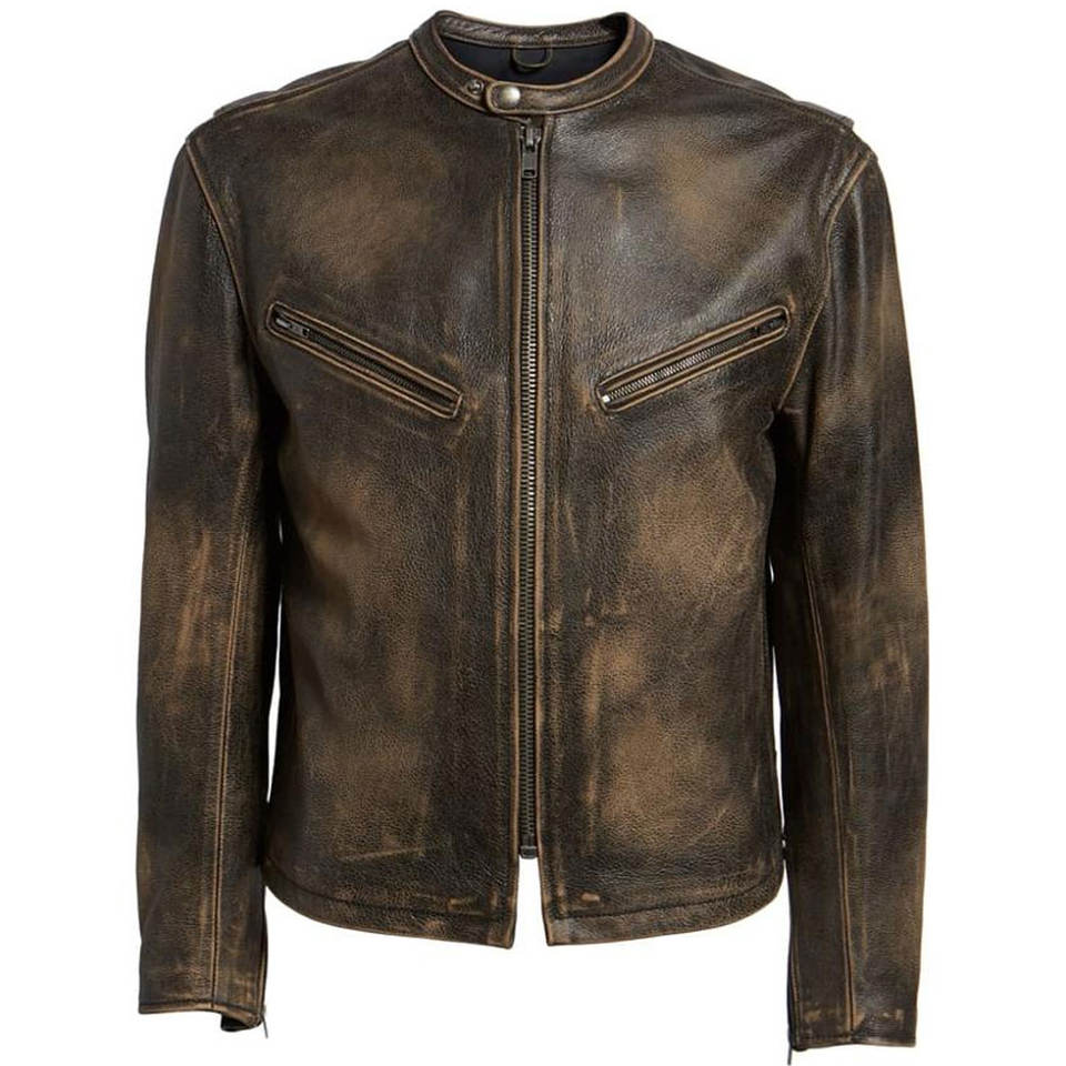 Vintage Stand Collar Leather Jacket Hooded Fashion Motorcycle Coat Brown Genuine Leather Cow Skin Classic Men's Front Logo