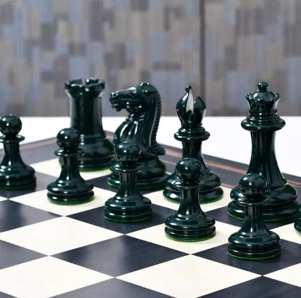 Vintage Staunton Chess Set Painted Boxwood in Olive Green And Yellow 4.5 Inch King At Best Price