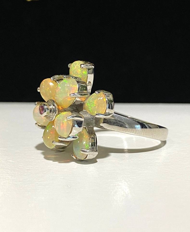 Vintage Sterling Silver Pear Cut Fire Opal And Rhodolite Flower Ring Size 9 Natural Gemstone Handmade Elegant Jewelry