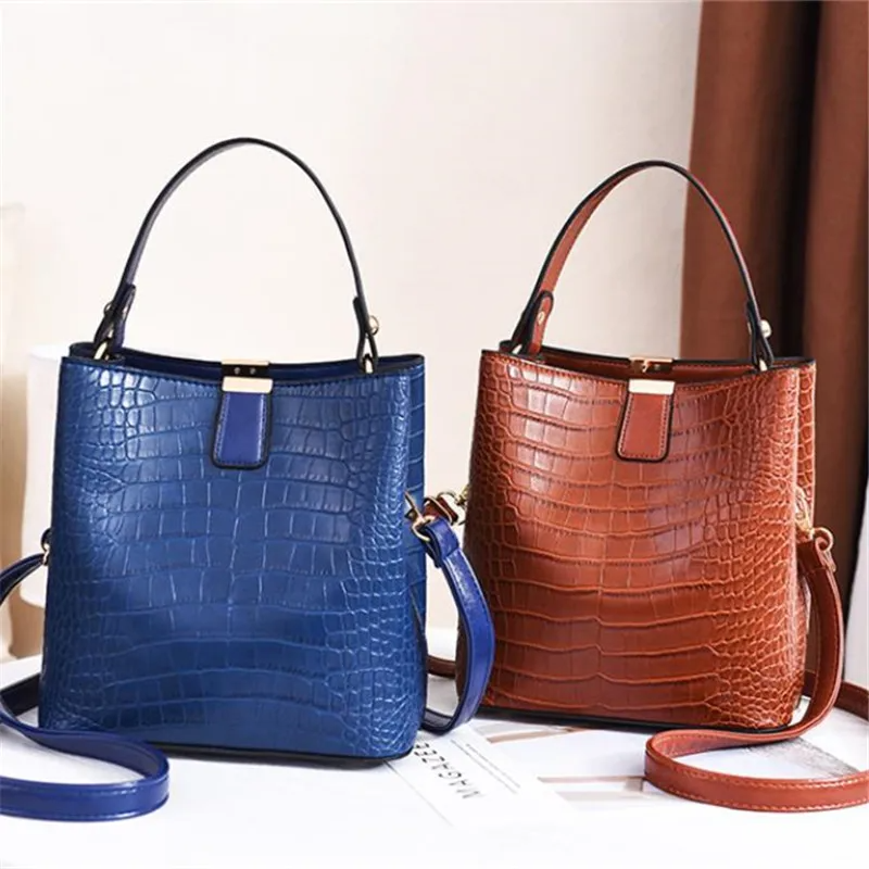 Vintage Stone Leather Handbag Shoulder Crossbody Bags Fashion Female Bucket Bag Large Capacity Women Tote Bag