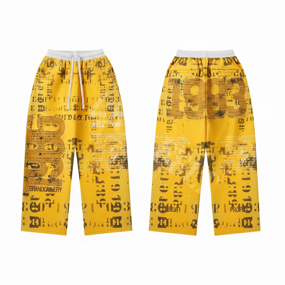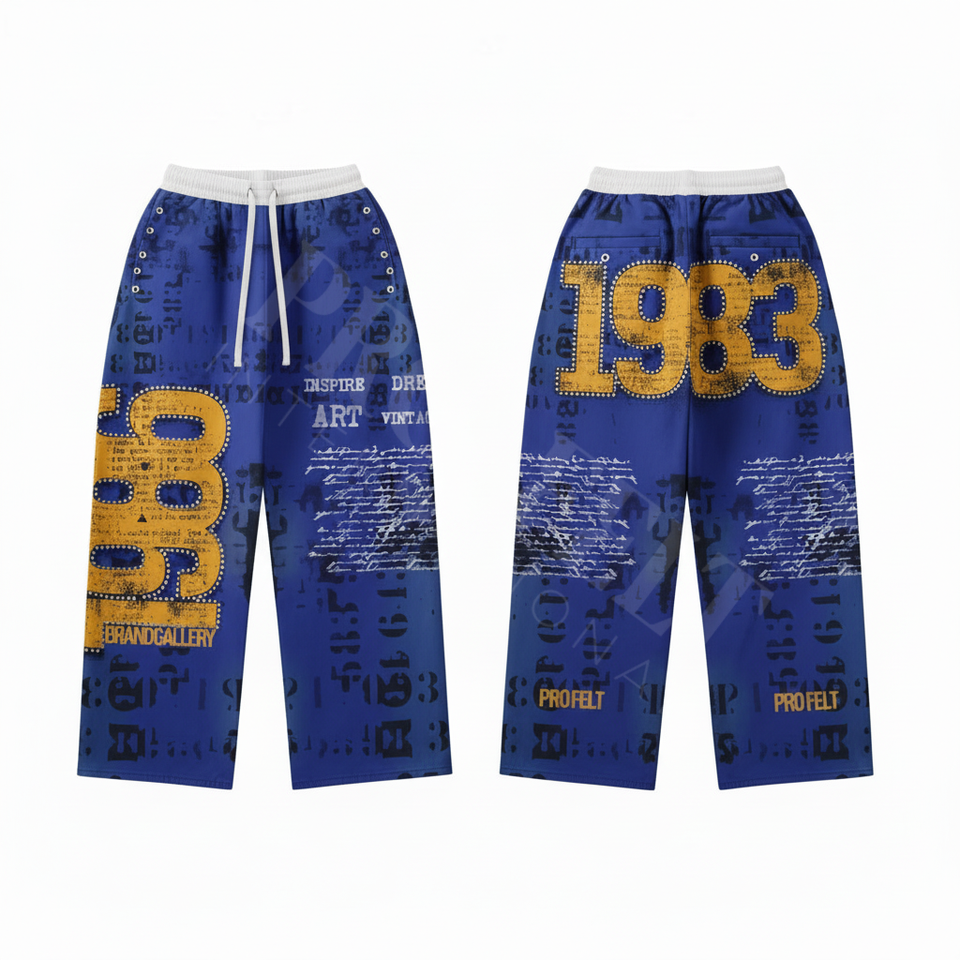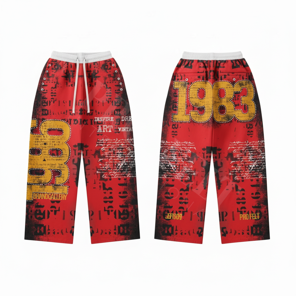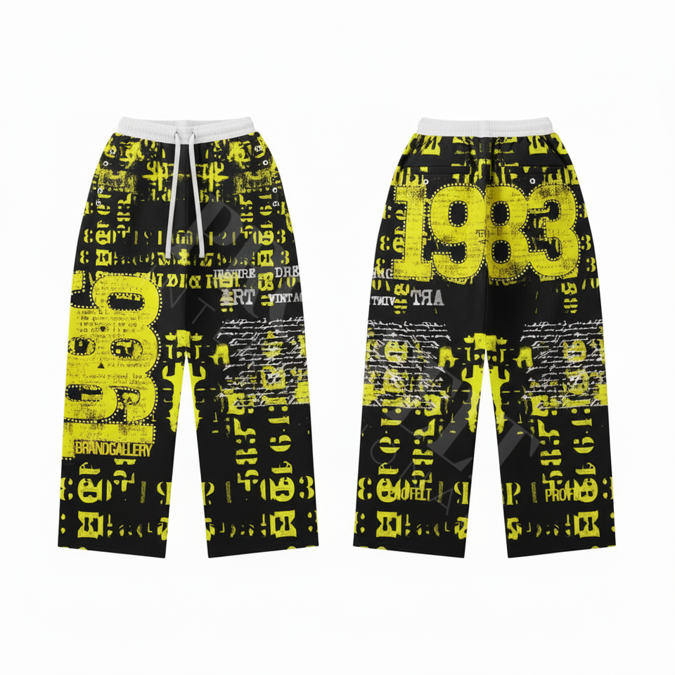 Vintage Streetwear Graphic Printed Joggers Numbers Sporty Relaxed Fit Unisex Comfortable Casual Wear Cotton Trouser Pants