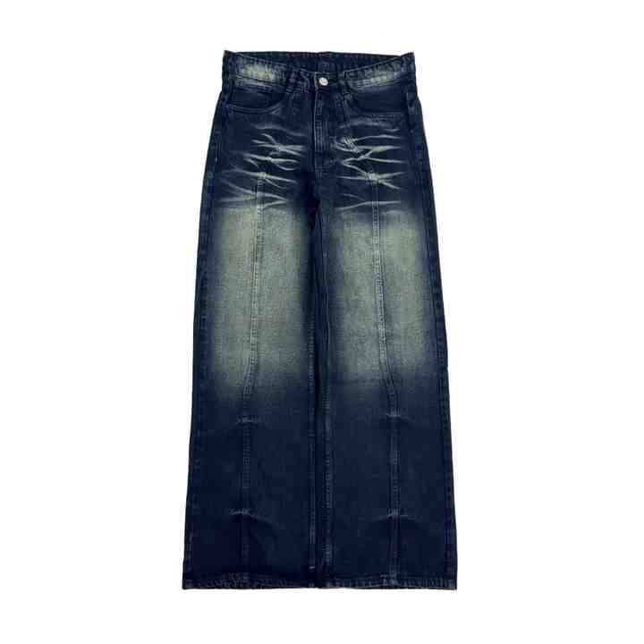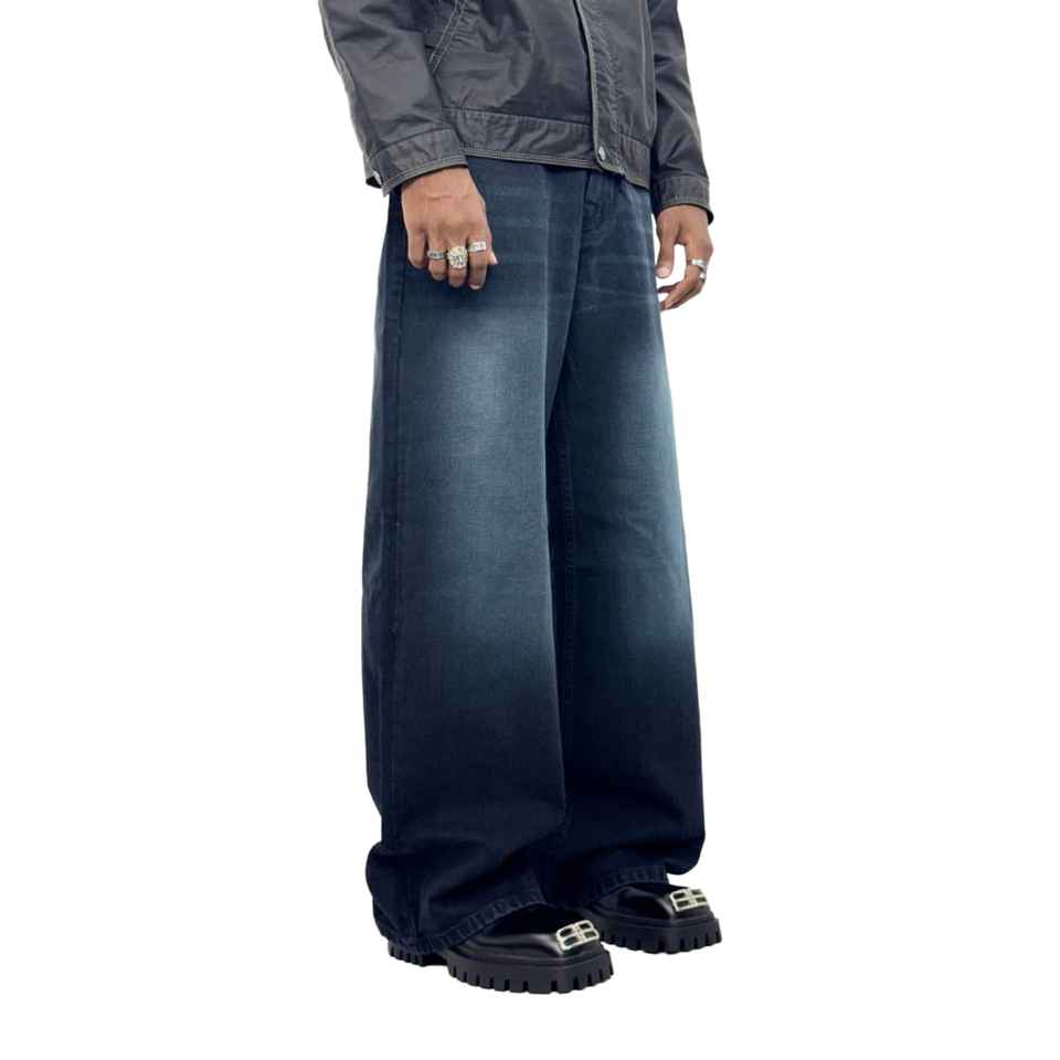 Vintage Streetwear HipHop Baggy Jeans High Street Trendy Dark Distressed Denim Pants Sun Fade Straight Fit Baggy Jeans for Men