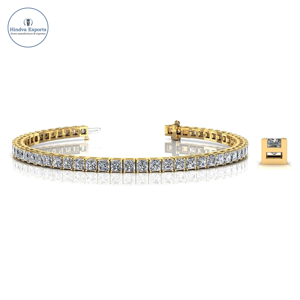 Vintage Style 14K Gold Tennis Bracelet 4.05Ct Princess Lab Grown Diamond Ball Pattern Bangles IGI Certified Claw Fashionable
