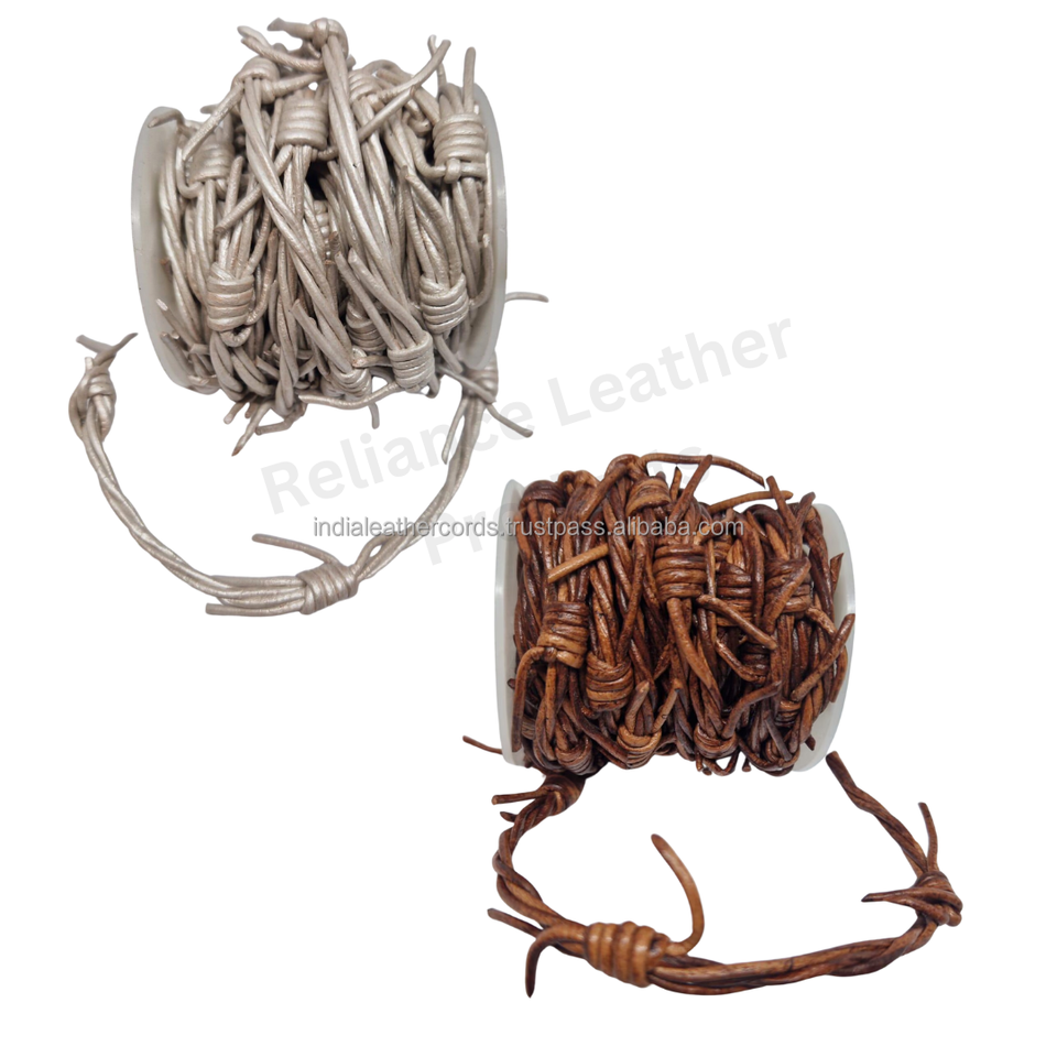 Vintage Style Barbed Wire Leather Cord for Charms - Cowhide Twisted Rope for Necklace Making