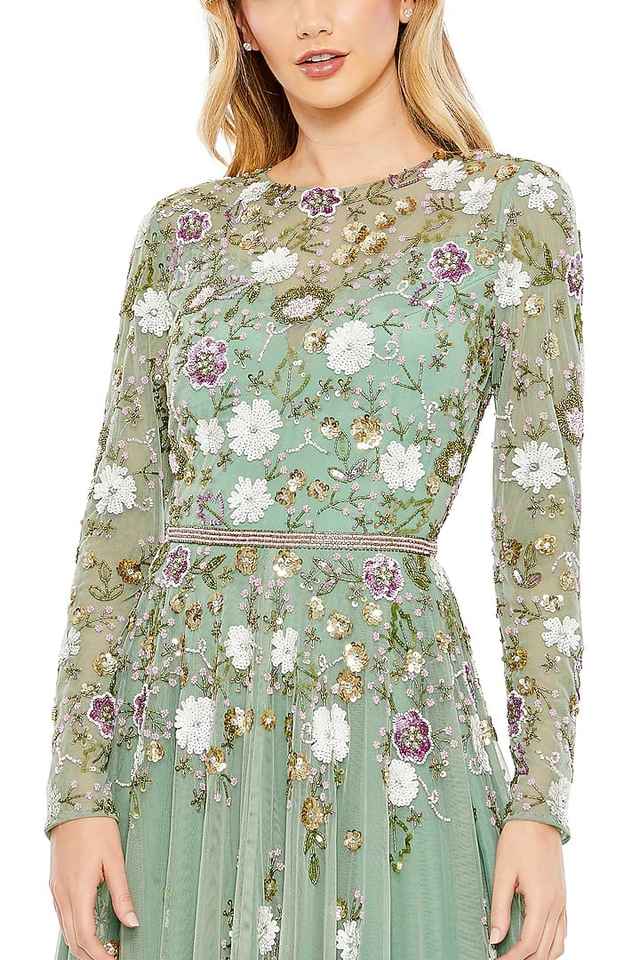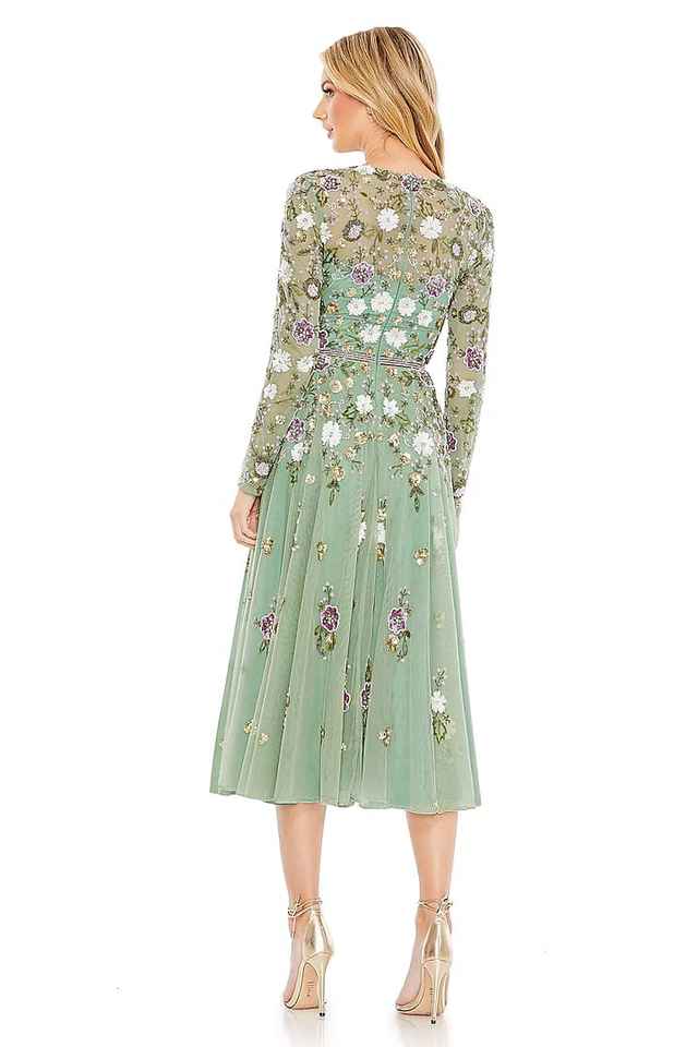 Vintage Style Bead Sequin Dress Long Sleeve Breathable Fitted Sheath Calf Length Formal Party Prom Evening with the Embellished
