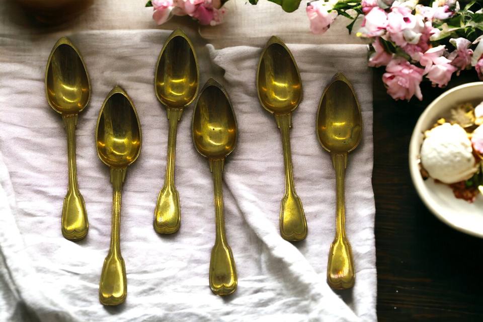 Vintage Style Brass Cutlery Set Six Place Dinner Spoons Table Forks Butter Knives Elegant Serving