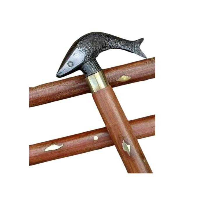 Vintage Style Brass Nautical Compass Handle for Wooden Walking Stick Cane Screw-On Compass for Rollator and Walker