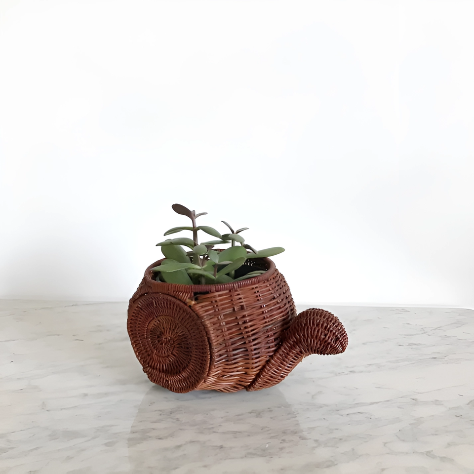 Vintage Style Brown Woven Rattan Snail Plant Pots Suitable for Indoor Home Decor and Gardens Animal Flower Pots Made in Vietnam
