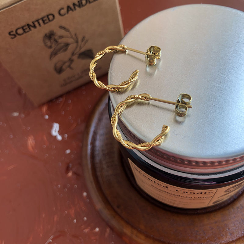 Vintage Style CC Hoop Earrings Stainless Steel Fashion Jewelry with Twisted Circle Design