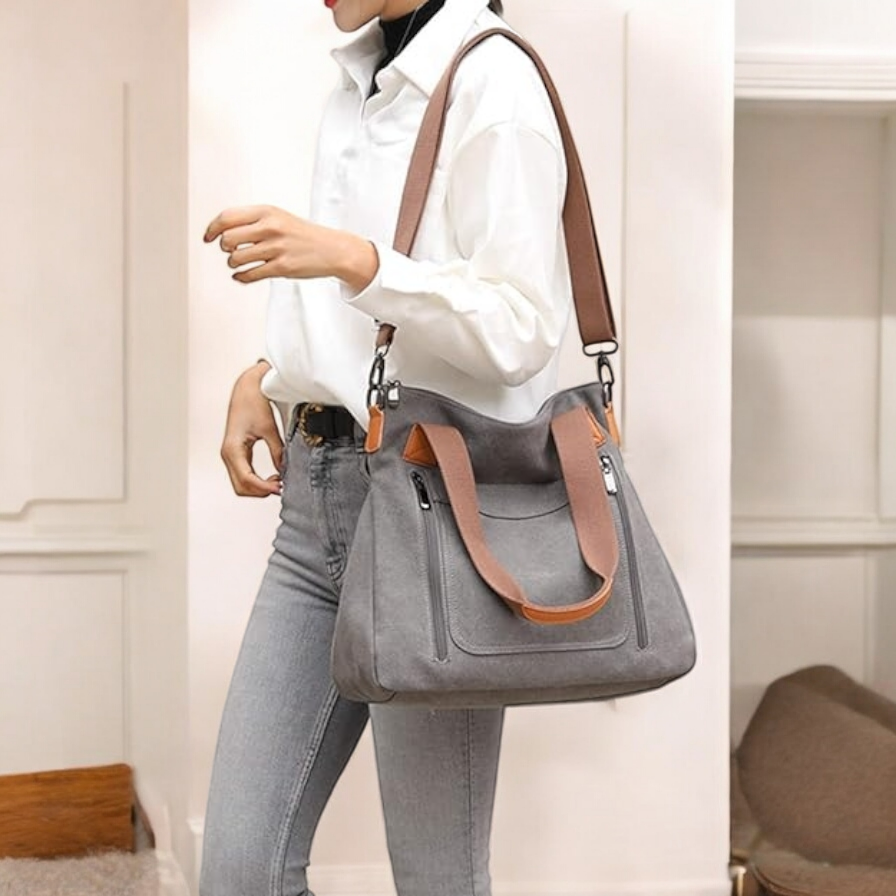 Vintage Style Canvas Messenger Bag with Leather Straps and Durable Brass Hardware