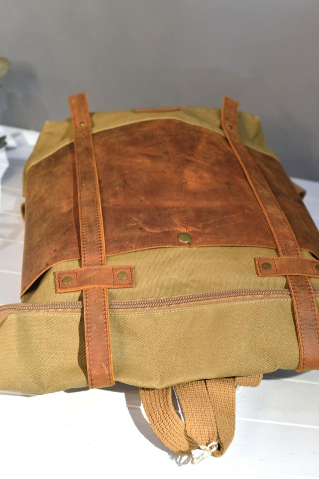 Leather Canvas Backpack