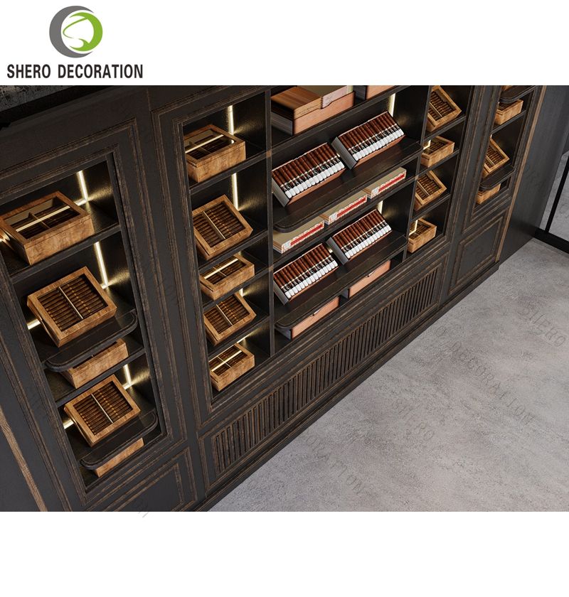 Vintage Style Cigar Shop Interior Design High-quality Cigar Shop Display Showcase with Cedar wood Cigar Shelf