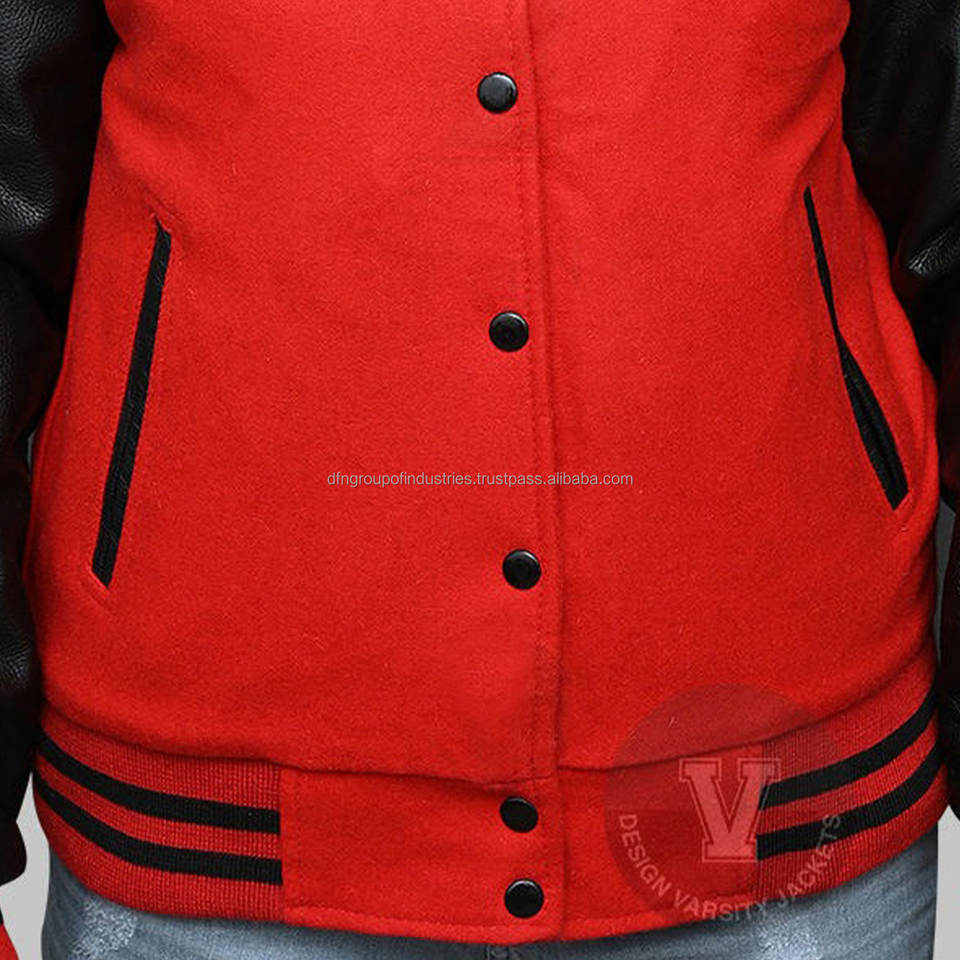 Vintage Style Custom Varsity Jacket Red Melton Wool Varsity Jackets Wholesale Letterman Jacket with Black Leather Sleeves
