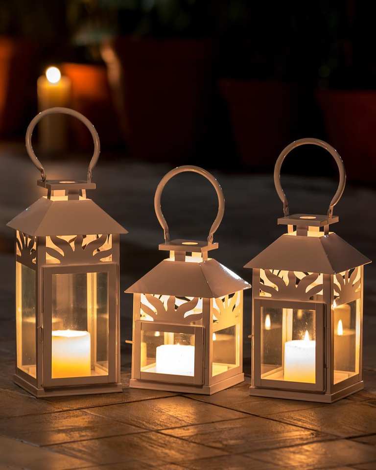 Vintage Style Decorative White Iron & Glass Candle Lantern Wedding Lantern for Indoor & Outdoor Wedding Entrance Way Decoration