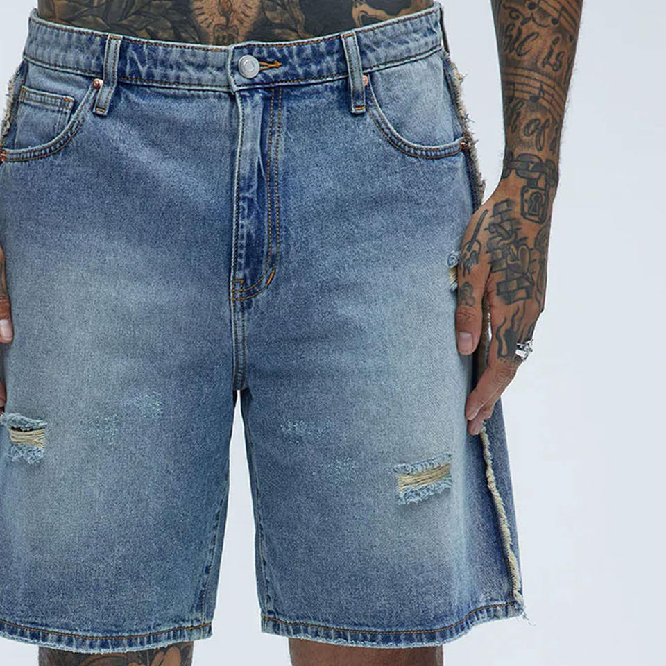 Vintage Style Distressed Denim Shorts Men Solid Summer Breathable Knee-length Hip Hop Men's Jeans Shorts Medium Washed Ripped
