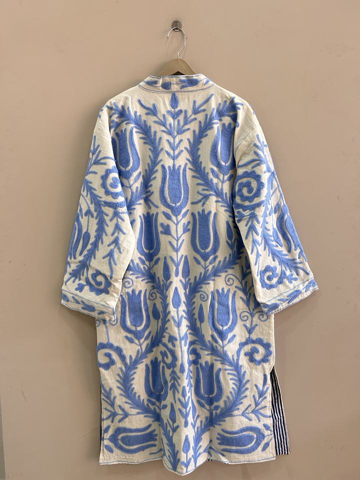 Vintage Style Floral Suzani Jacket For Women Long Kimono Duster Jacket Embroidered Coat