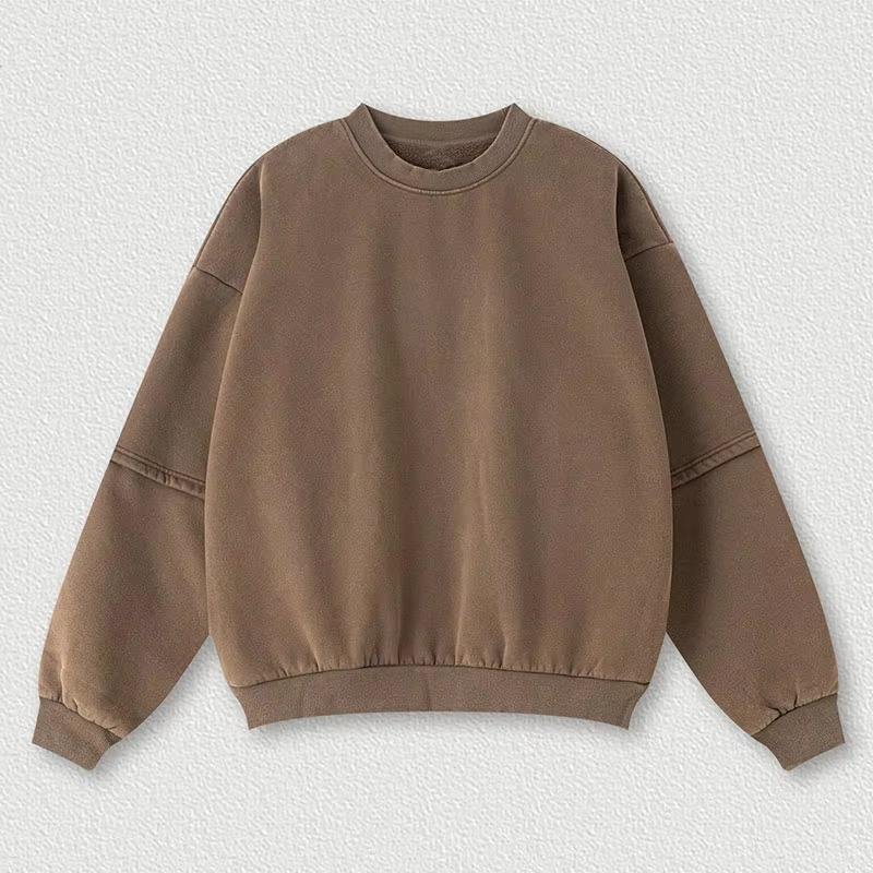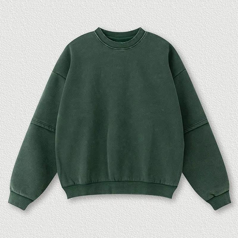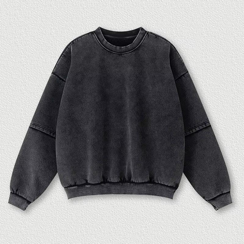 Vintage Style French Terry Sweatshirt Streetwear Acid Washed Distressed Oversized Crewneck Sweatshirt