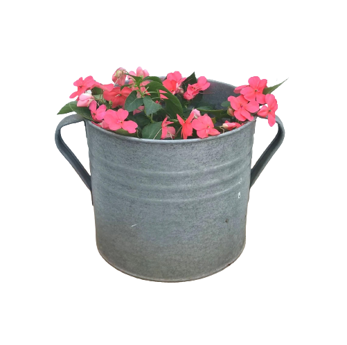 Vintage Style Galvanized Metal Flower Planter With Two Sided Handle for Home Balcony Garden Decor Flower Plant Pot