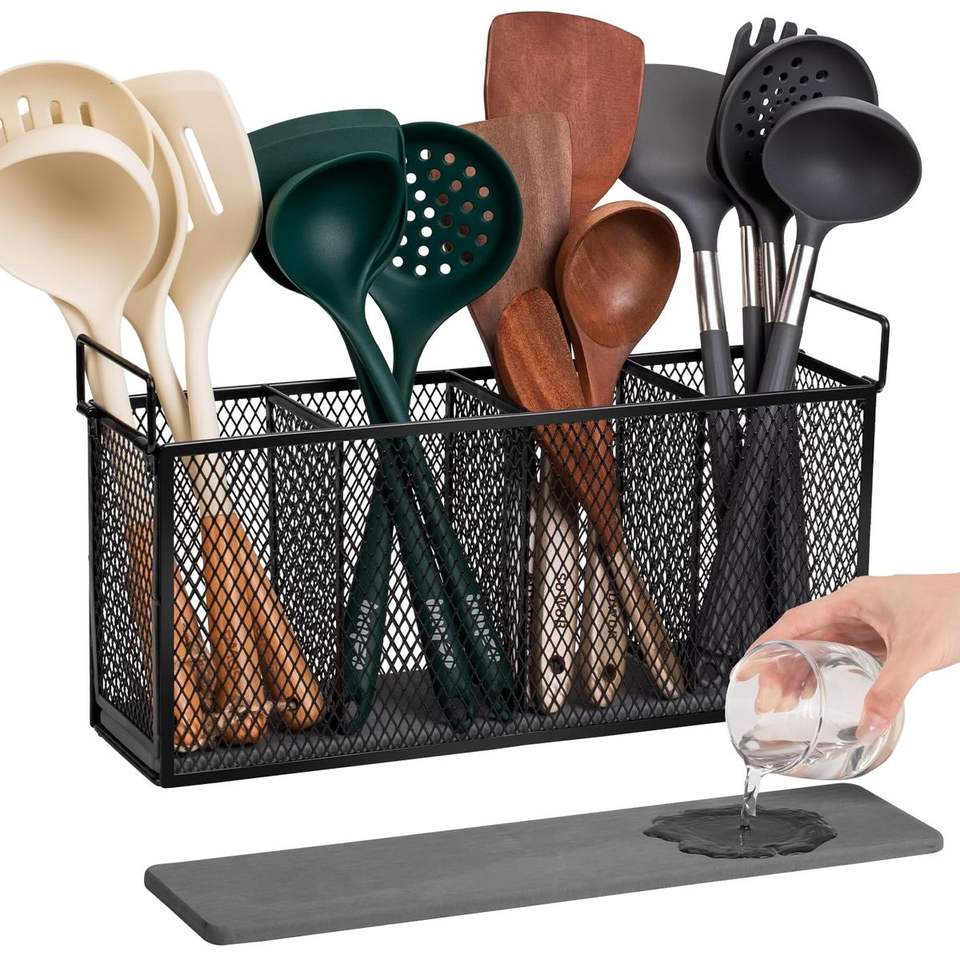 Vintage Style Iron Cutlery Holder For Rustic Kitchen Decor Creating Warm Ambience And Organized Storage
