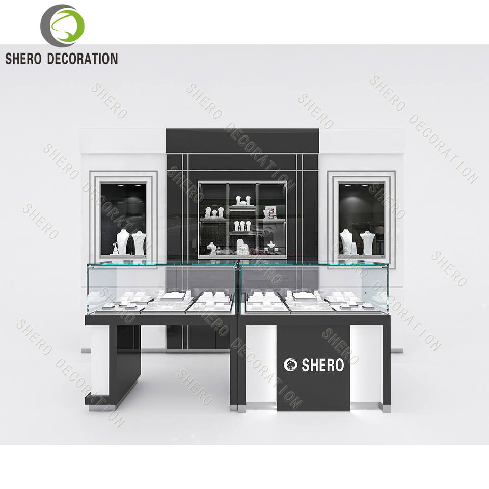 jewellery counter display, glass wall showcase