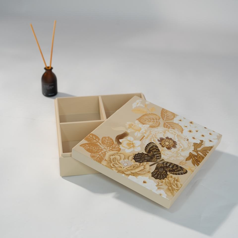 Vintage Style Lacquer Box With Exquisite Floral And Butterfly Painting Durable Wood Construction With Internal Sections